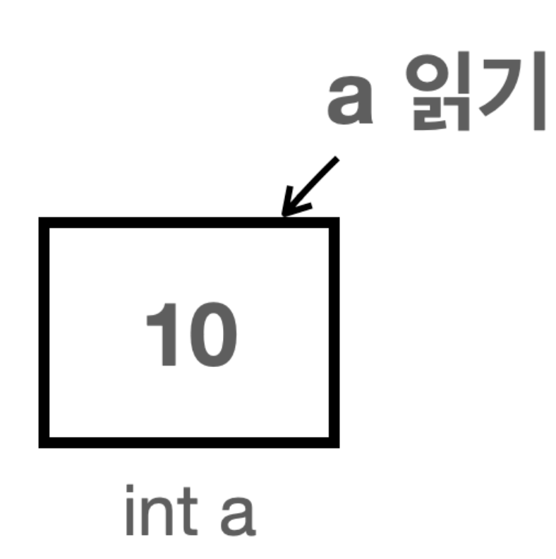 - 변수 `a`에 `10`이 들어가 있다면 자바는 실행 시점에 변수의 값을 읽어서 사용한다.