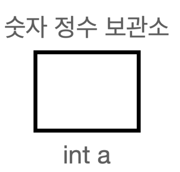 - 숫자 정수(integer)를 보관할 수 있는 이름이 `a`라는 데이터 저장소를 만든다. 이것을 변수라 한다.