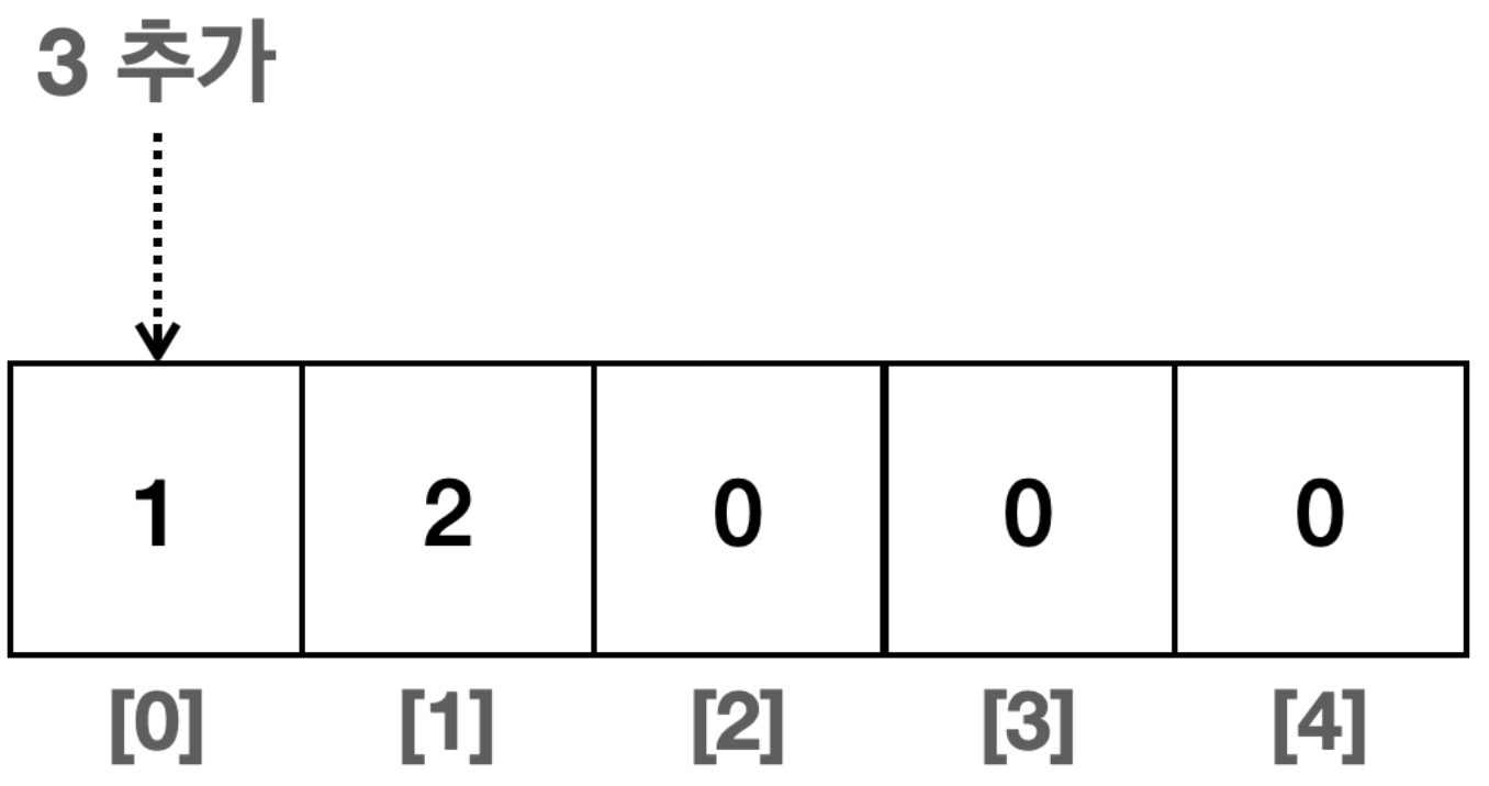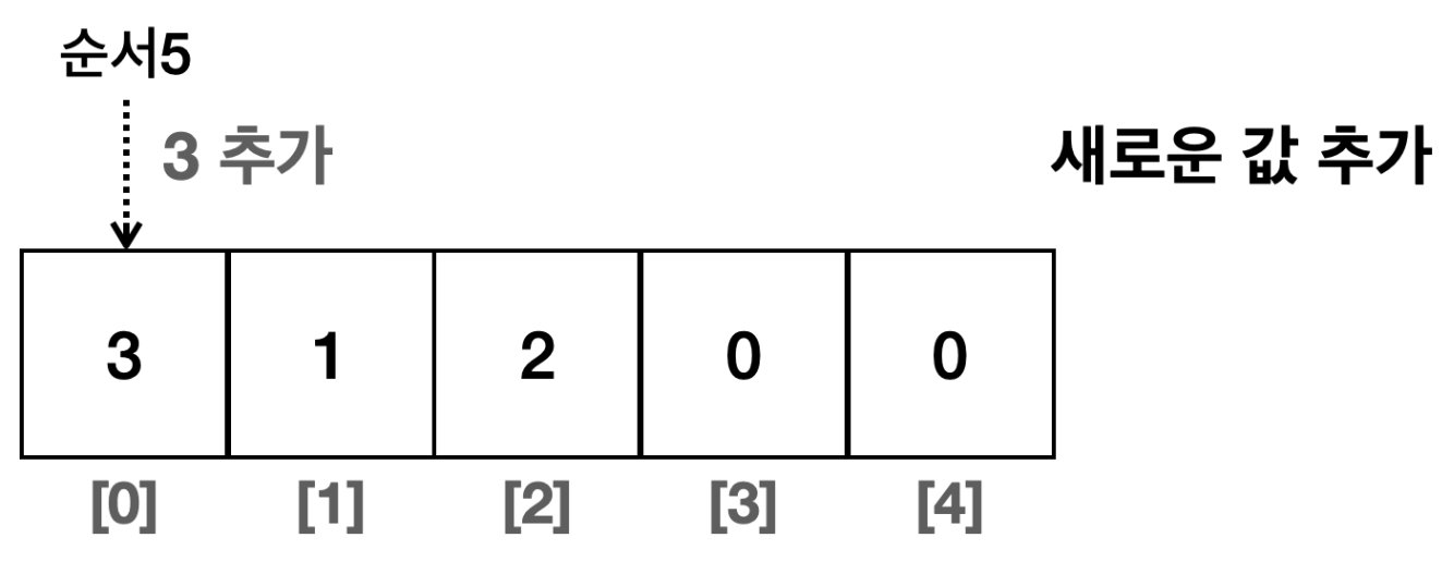 - 증가된 배열에 데이터를 추가하면 된다. (`size`도 하나 증가)