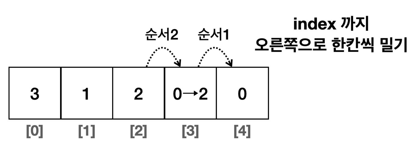 //요소의 마지막부터 index까지 오른쪽으로 밀기