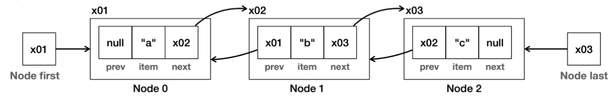 - 자바가 제공하는 `LinkedList`는 이중 연결 구조를 사용한다. 이 구조는 다음 노드 뿐만 아니라 이전 노드로도 이동할 수 있다.