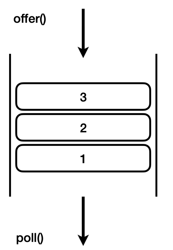 전통적으로 큐에 값을 넣는 것을 `offer`라 하고, 큐에서 값을 꺼내는 것을 `poll`이라 한다.