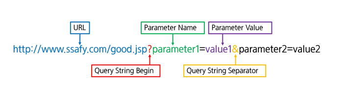 | 장점 | 간단한 데이터를 빠르게 전송 from tag뿐만 아니라 직접 URL에 입력하여 전송 가능 |