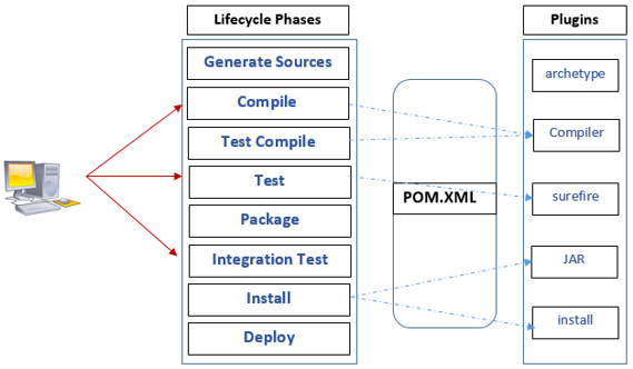 - Maven에서는 라이프 사이클 개념이 도입되어 빌드 순서 등을 정의 할 수 있다.